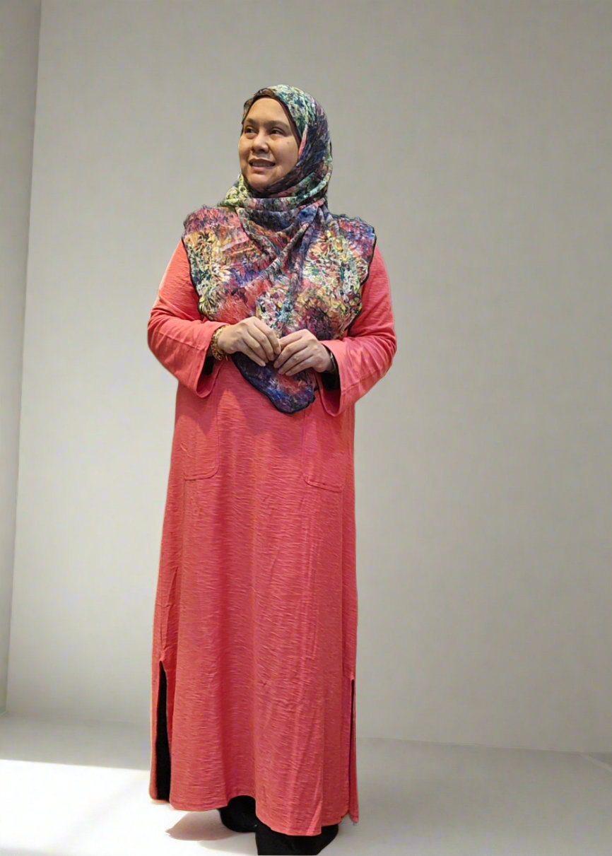 Or wear it with telekung tops as a comfy choice for Umrah,Hajj or ibadah at the mosque! Due to its design, taller people would wear this as mid calf, whereas some will wear it as a full length dress. Choose a size which is looser then your usual measurements.
